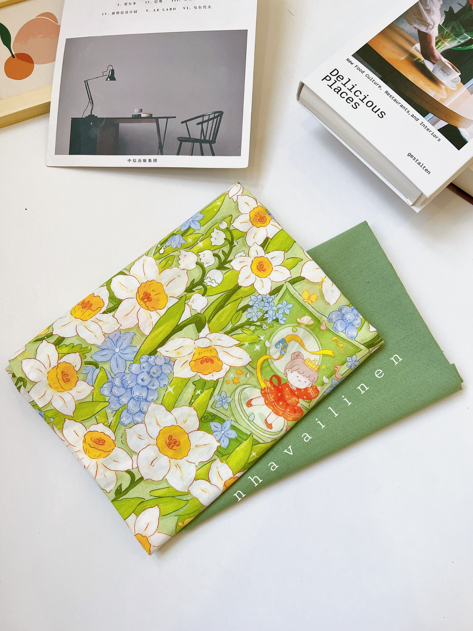 - Những họa tiết gân hoa thủy tiên trên Vải Nhà Linen có màu sắc tươi sáng, nhẹ nhàng rất thích hợp may đồ người lớn và trẻ em đều rất xinh.