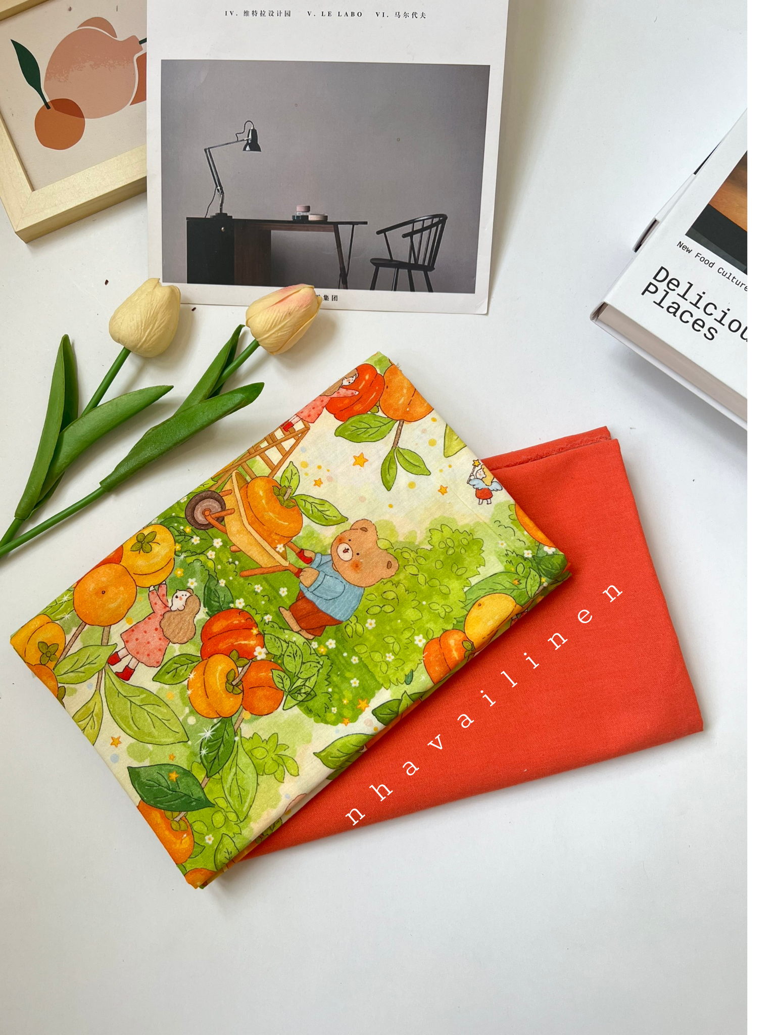 COTTON HỌA TIẾT GẤU ĐẨY XE TÁO