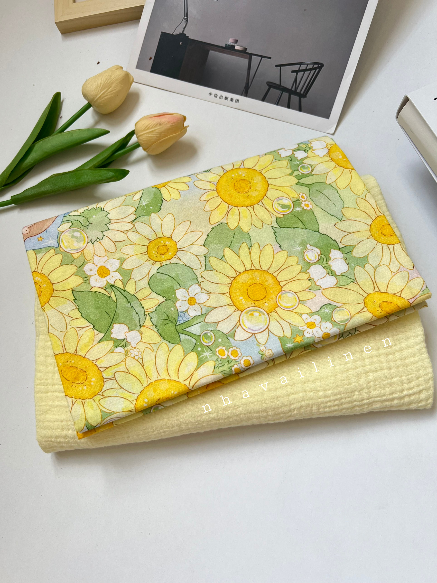 COTTON HỌA TIẾT HOA HƯỚNG DƯƠNG THỎ
