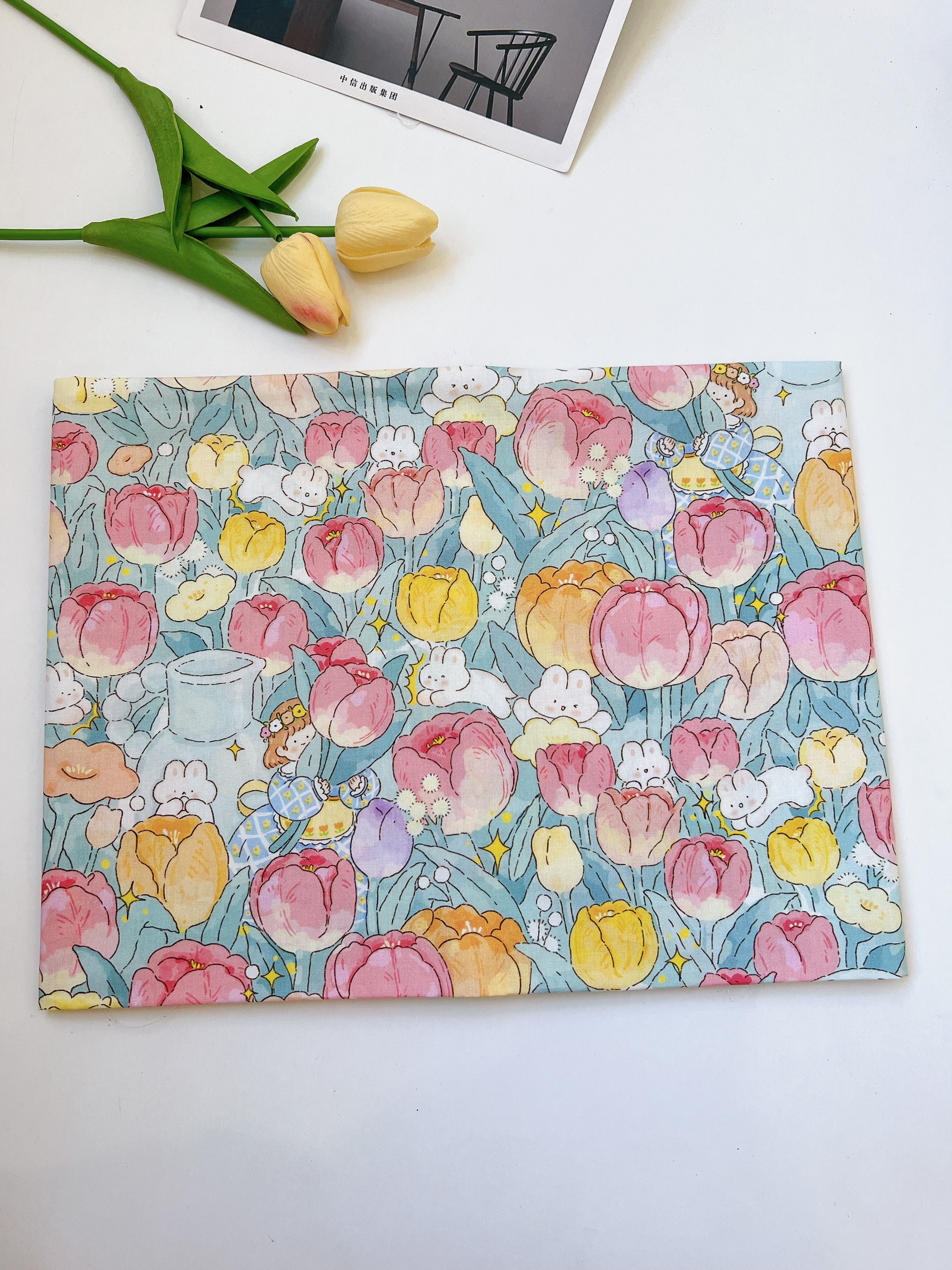 COTTON HỌA TIẾT EM BÉ THỎ HOA HỒNG