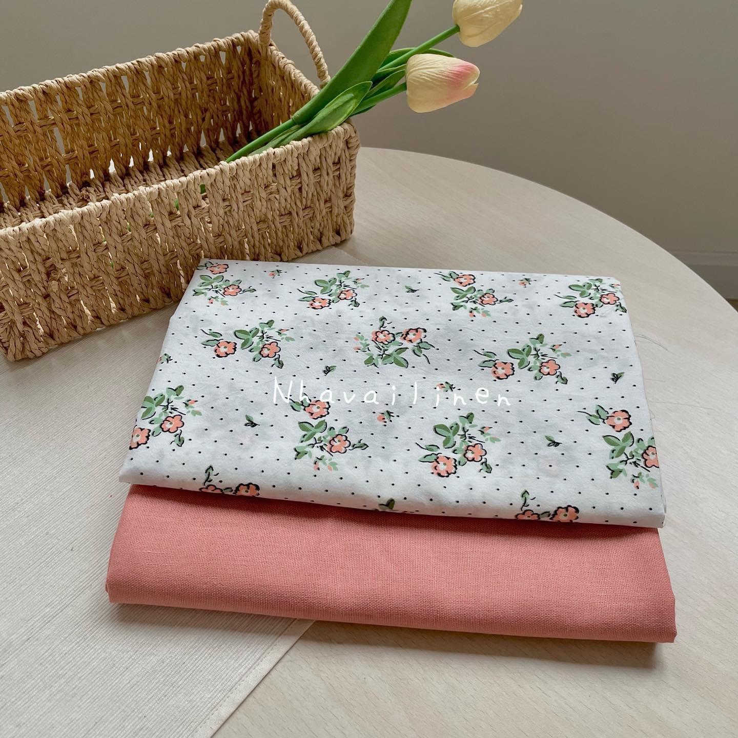 COTTON HỌA TIẾT HOA HỒNG CAM CHẤM BI