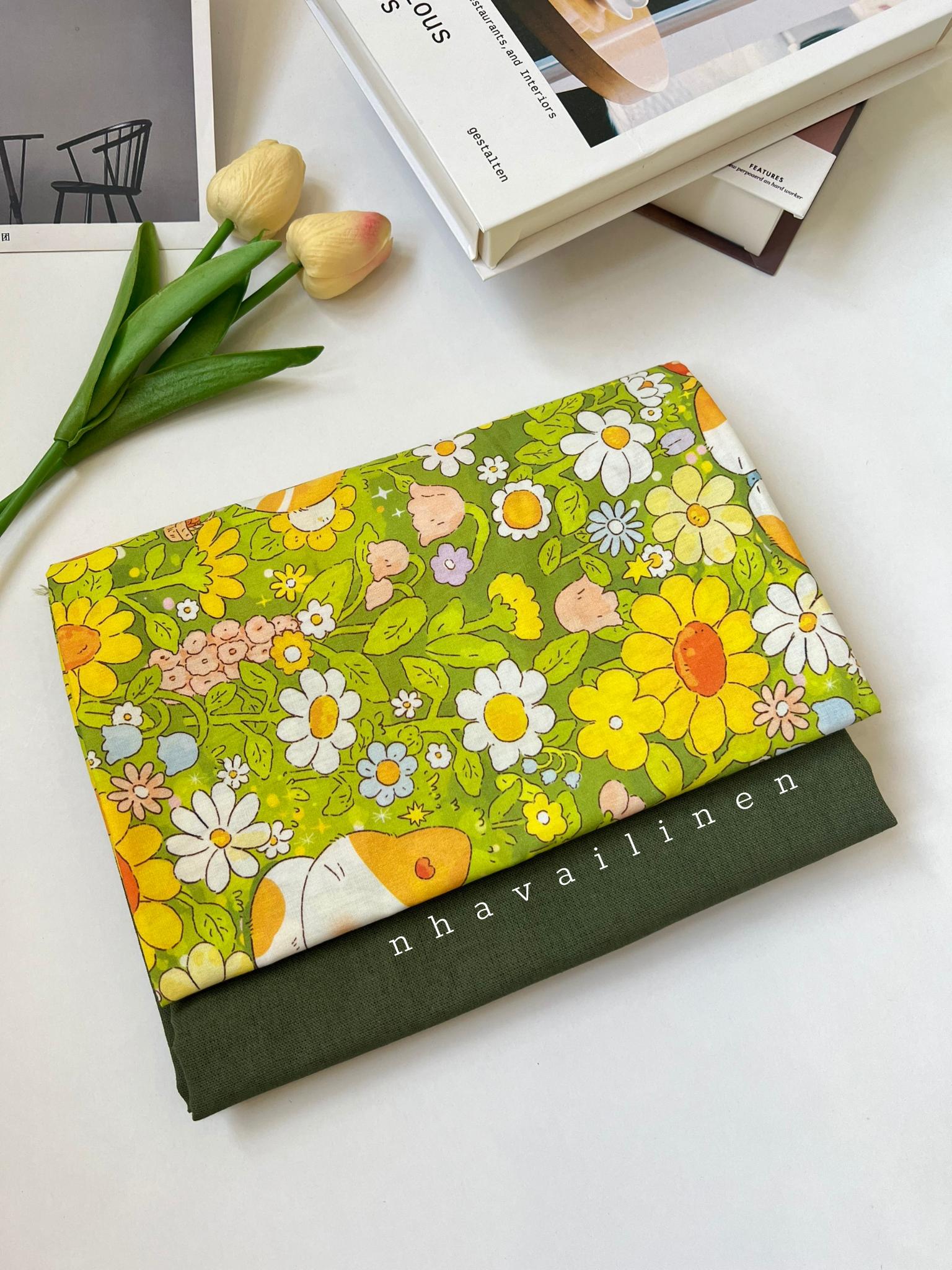 - Những họa tiết gân hoa thủy tiên trên Vải Nhà Linen có màu sắc tươi sáng, nhẹ nhàng rất thích hợp may đồ người lớn và trẻ em đều rất xinh.