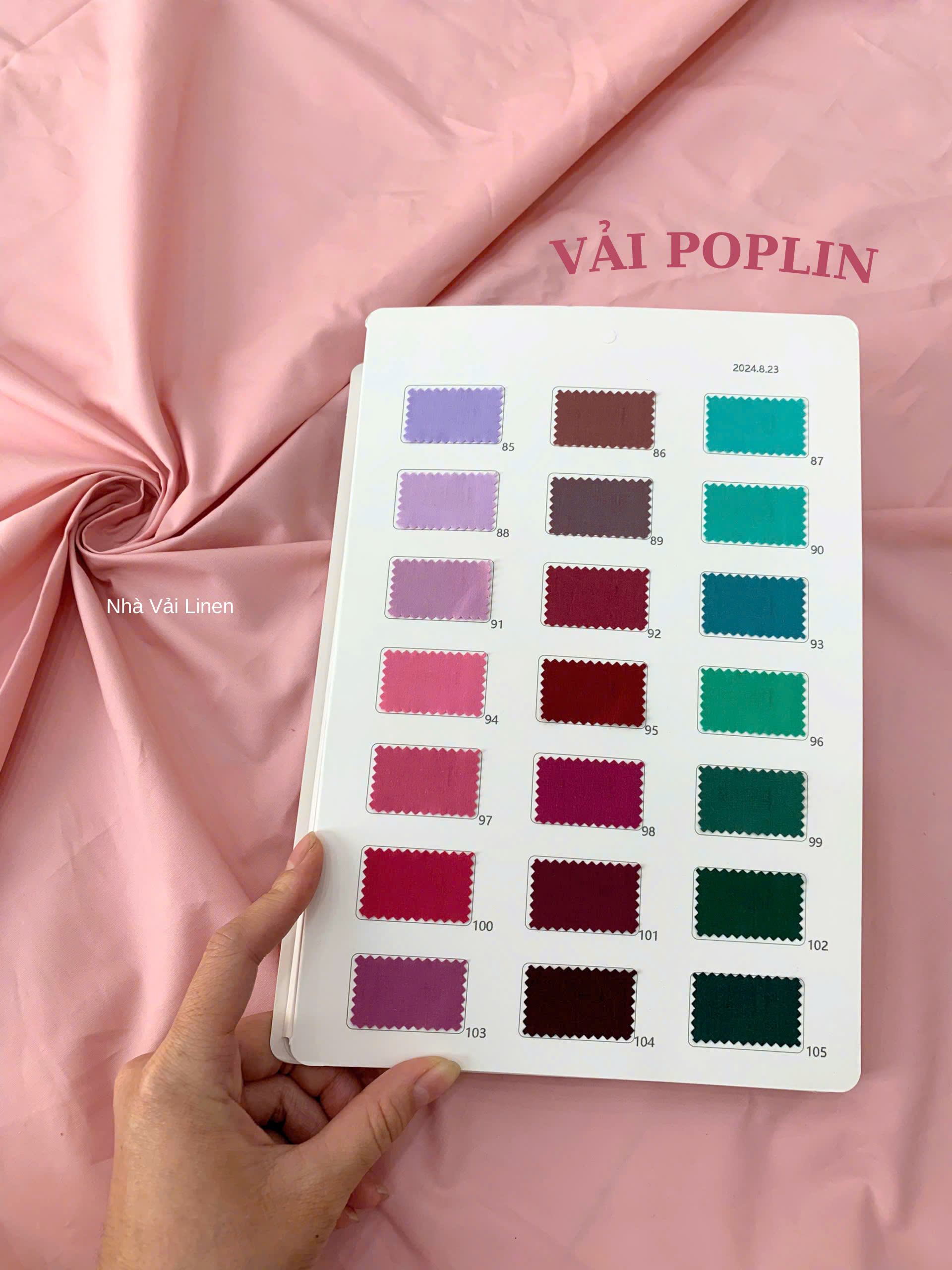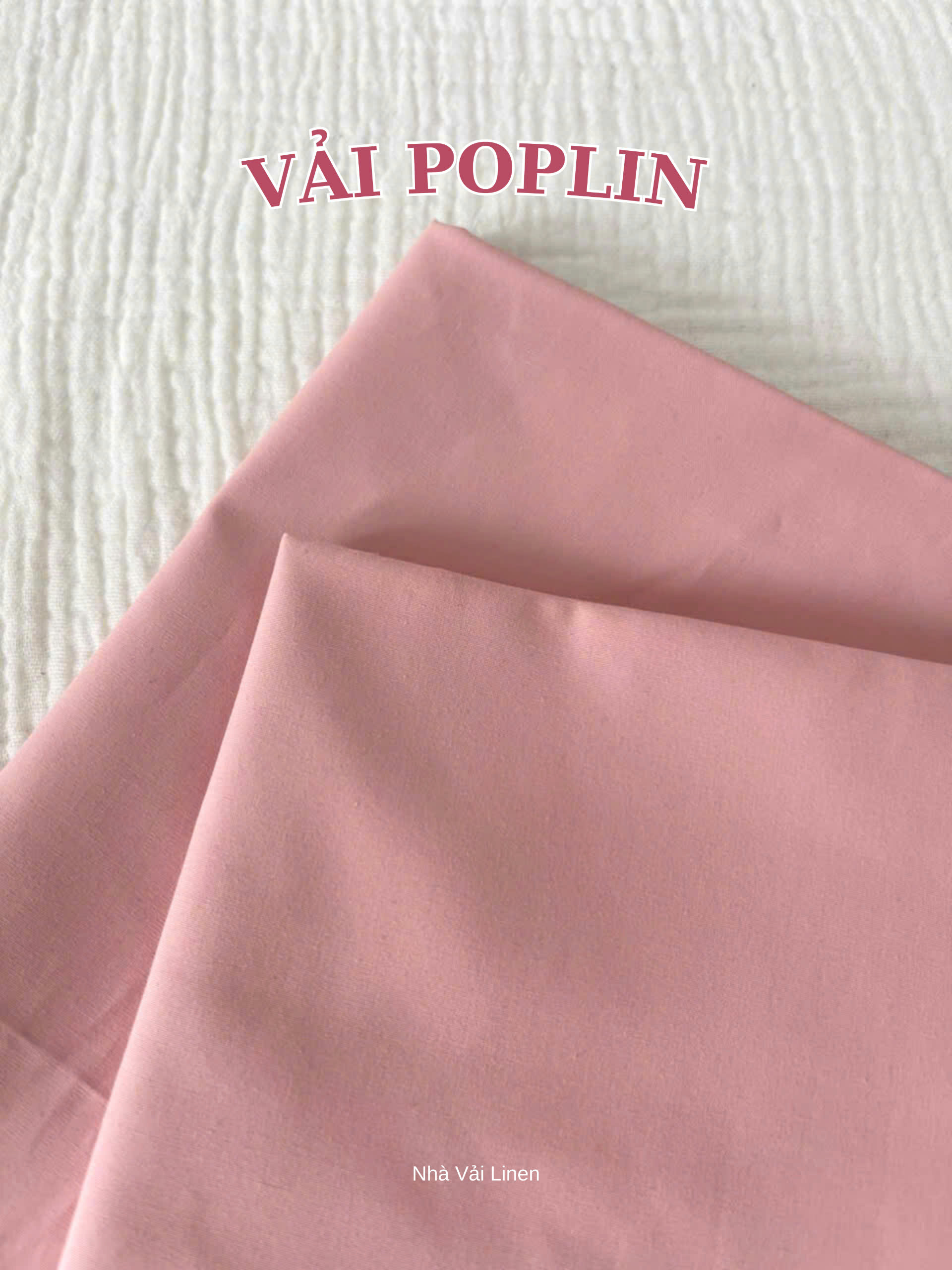 Vải poplin là loại vải dệt trơn với các sợi ngang và sợi dọc được dệt chặt chẽ, tạo nên bề mặt mịn màng, mềm mại nhưng vẫn rất thoáng khí. Poplin thường được làm từ 100% cotton hoặc kết hợp với sợi tổng hợp như 𝑷𝒐𝒍𝒚𝒆𝒔𝒕𝒆𝒓 hay 𝑽𝒊𝒔𝒄𝒐𝒔𝒆 để tăng thêm độ bền và giảm nhăn.
