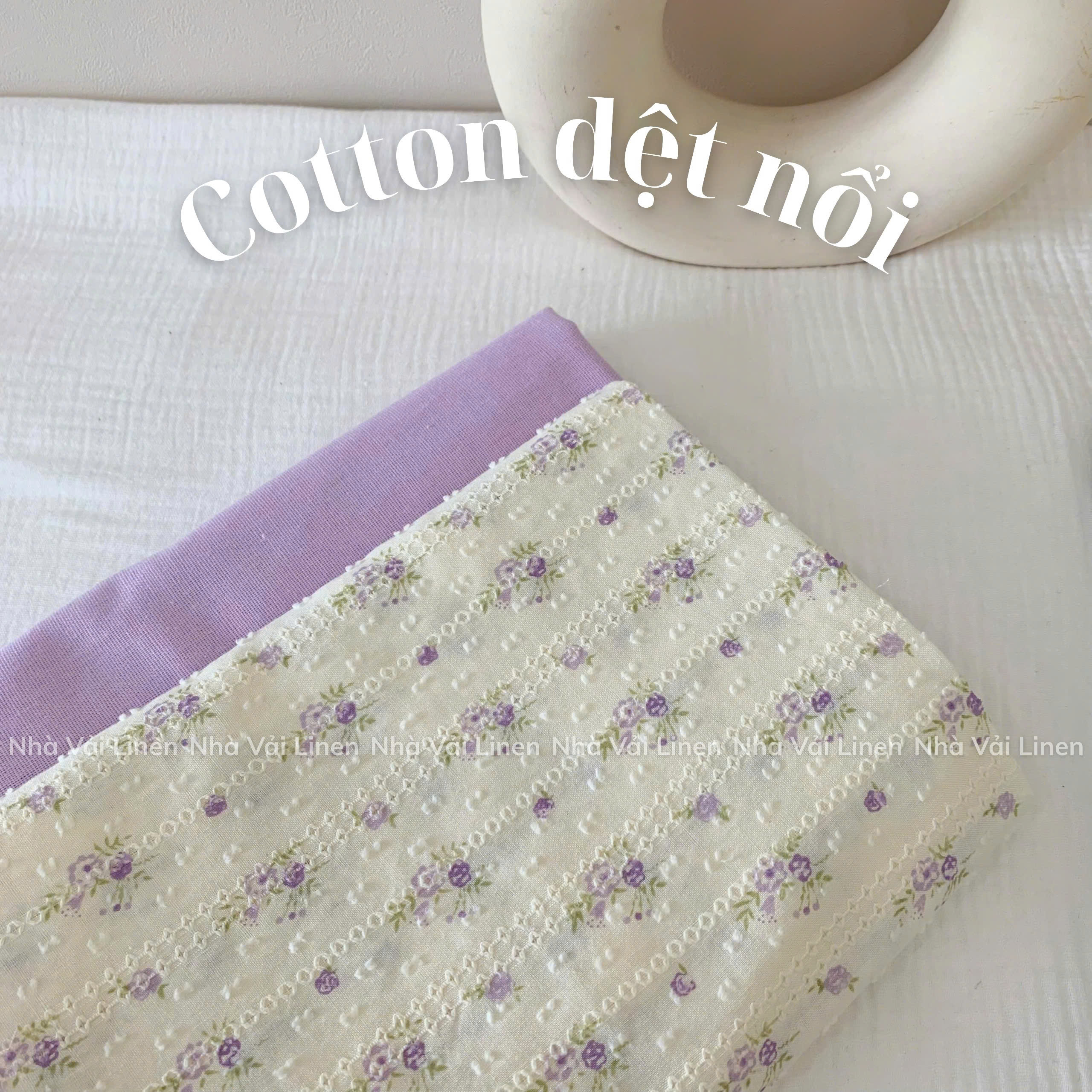 COTTON DỆT NỔI HOA LÁ TÍM