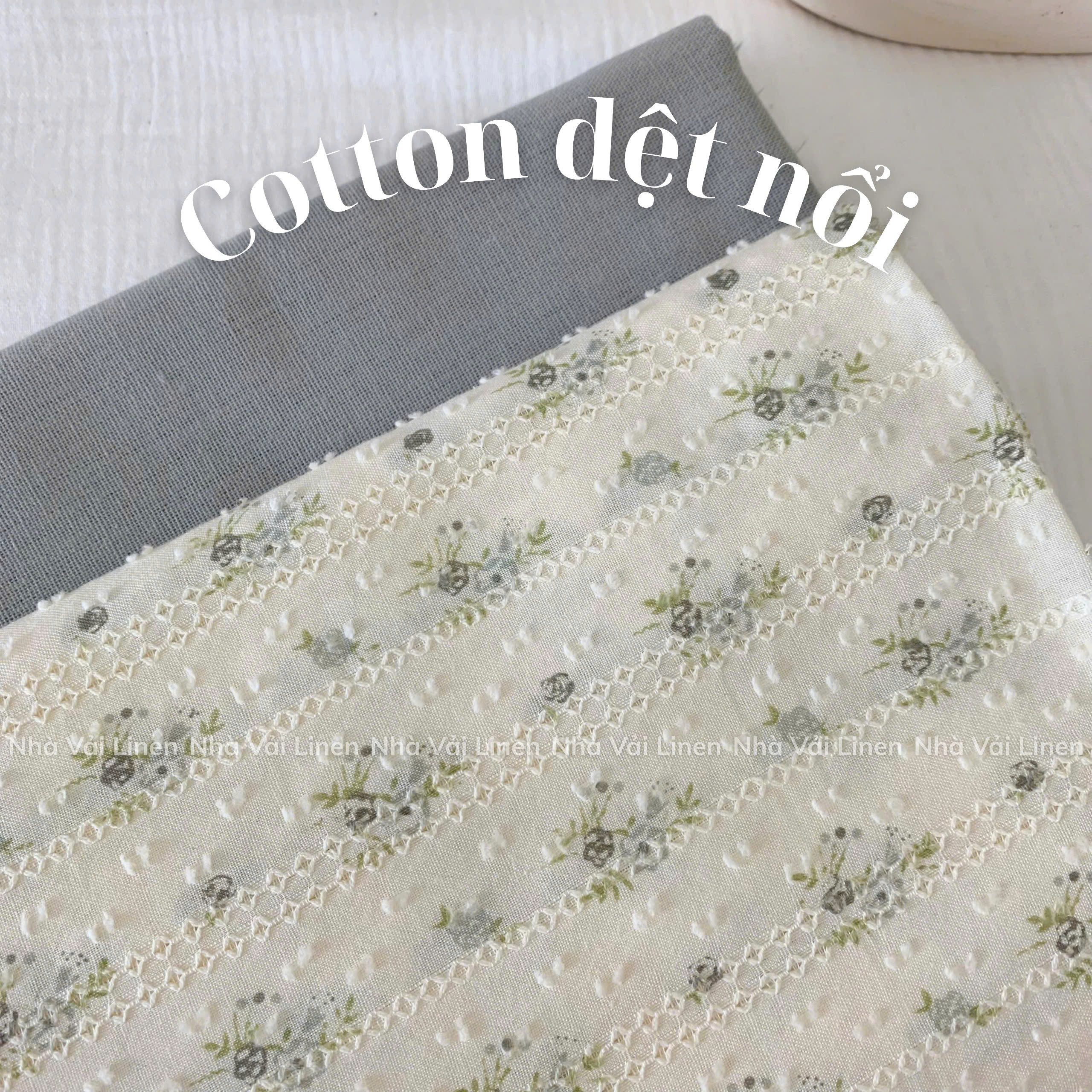 COTTON DỆT NỔI HOA LÁ XÁM