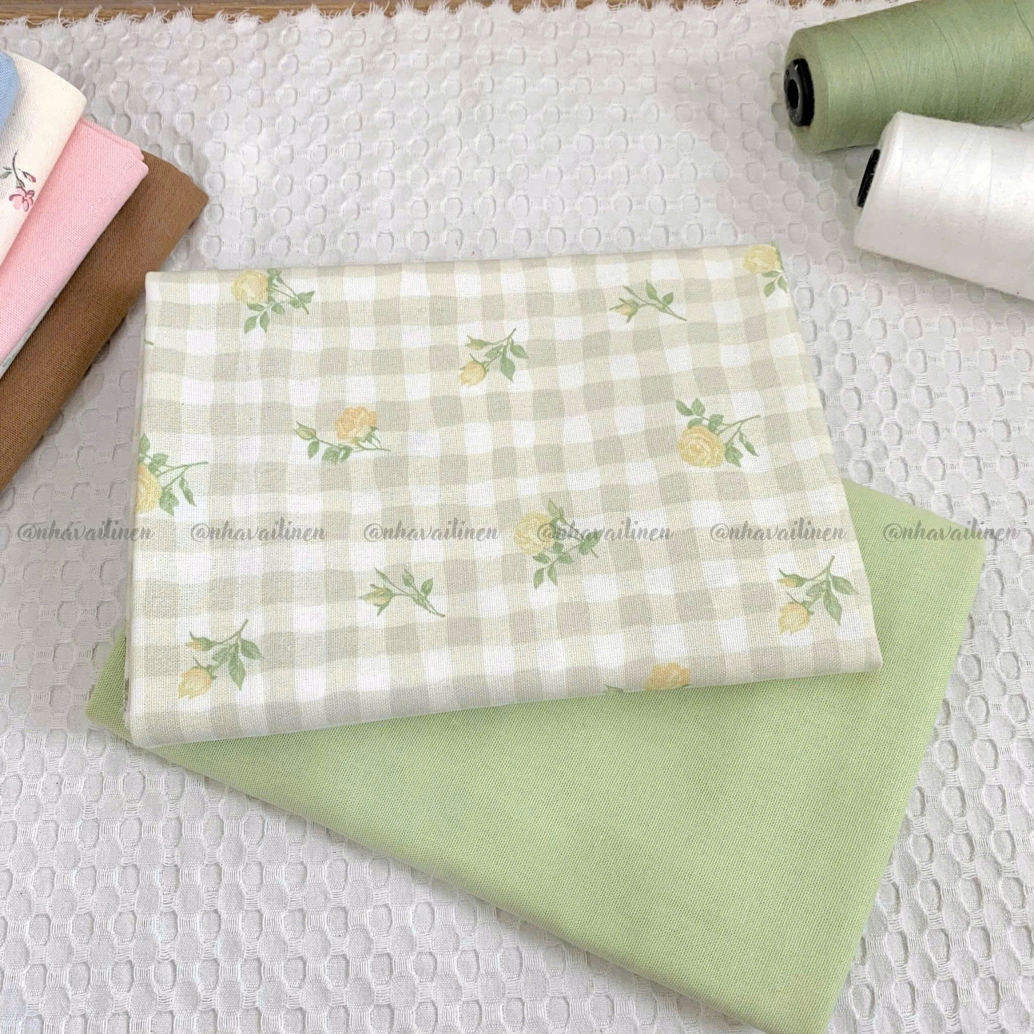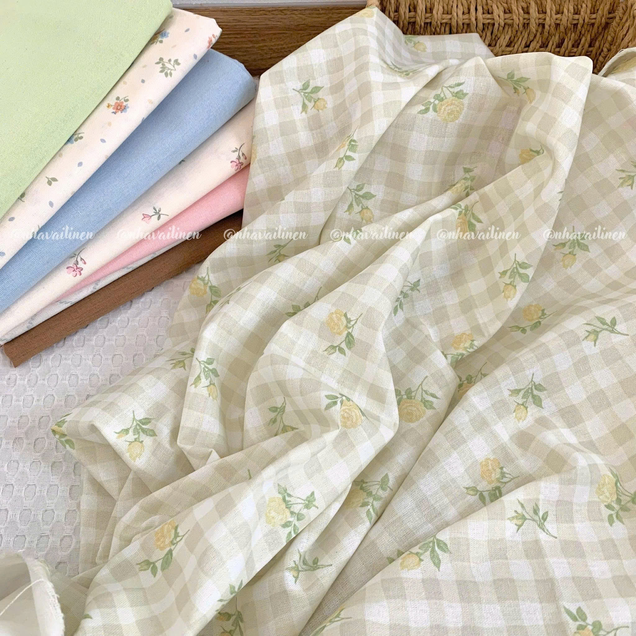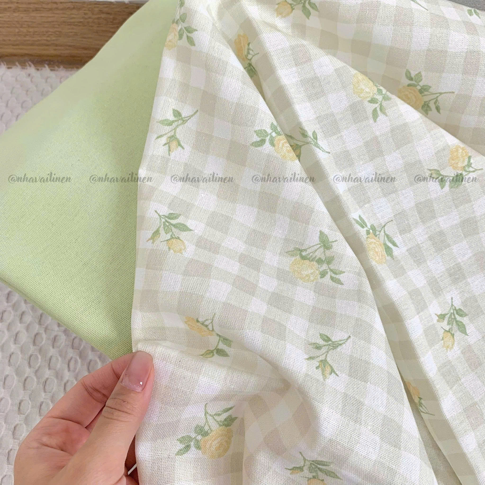 Vải linen bột ô vuông hoa
