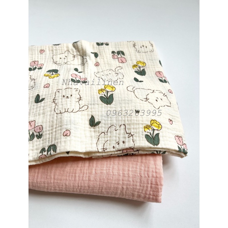 MUSLIN HỌA TIẾT MÈO TULIP NỀN BE