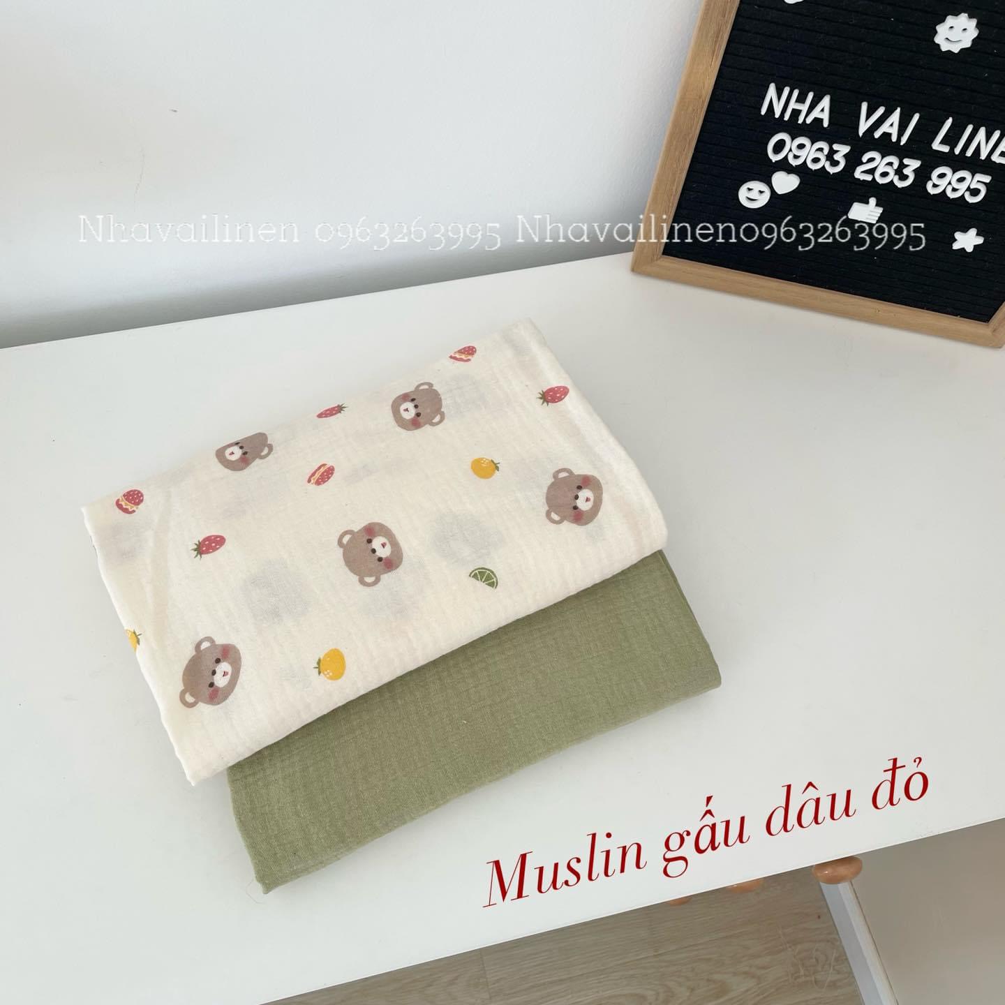 - Chất liệu: Vải Muslin được làm từ sợi cotton tự nhiên.