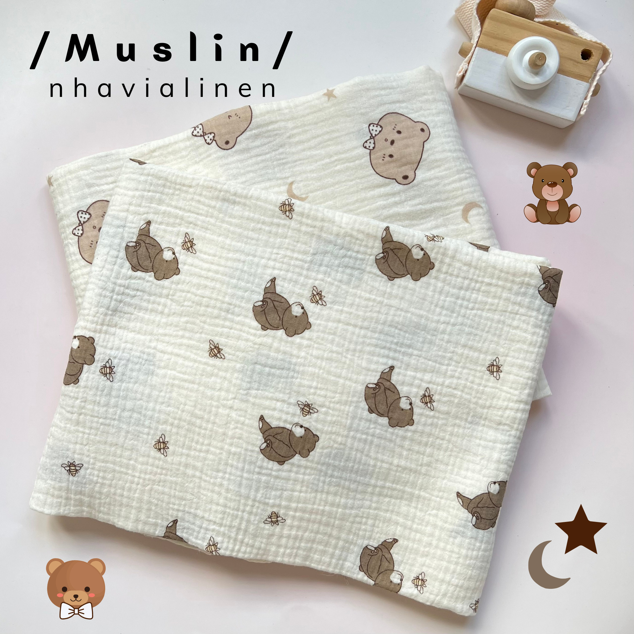 - Chất liệu: Vải Muslin được làm từ sợi cotton tự nhiên.