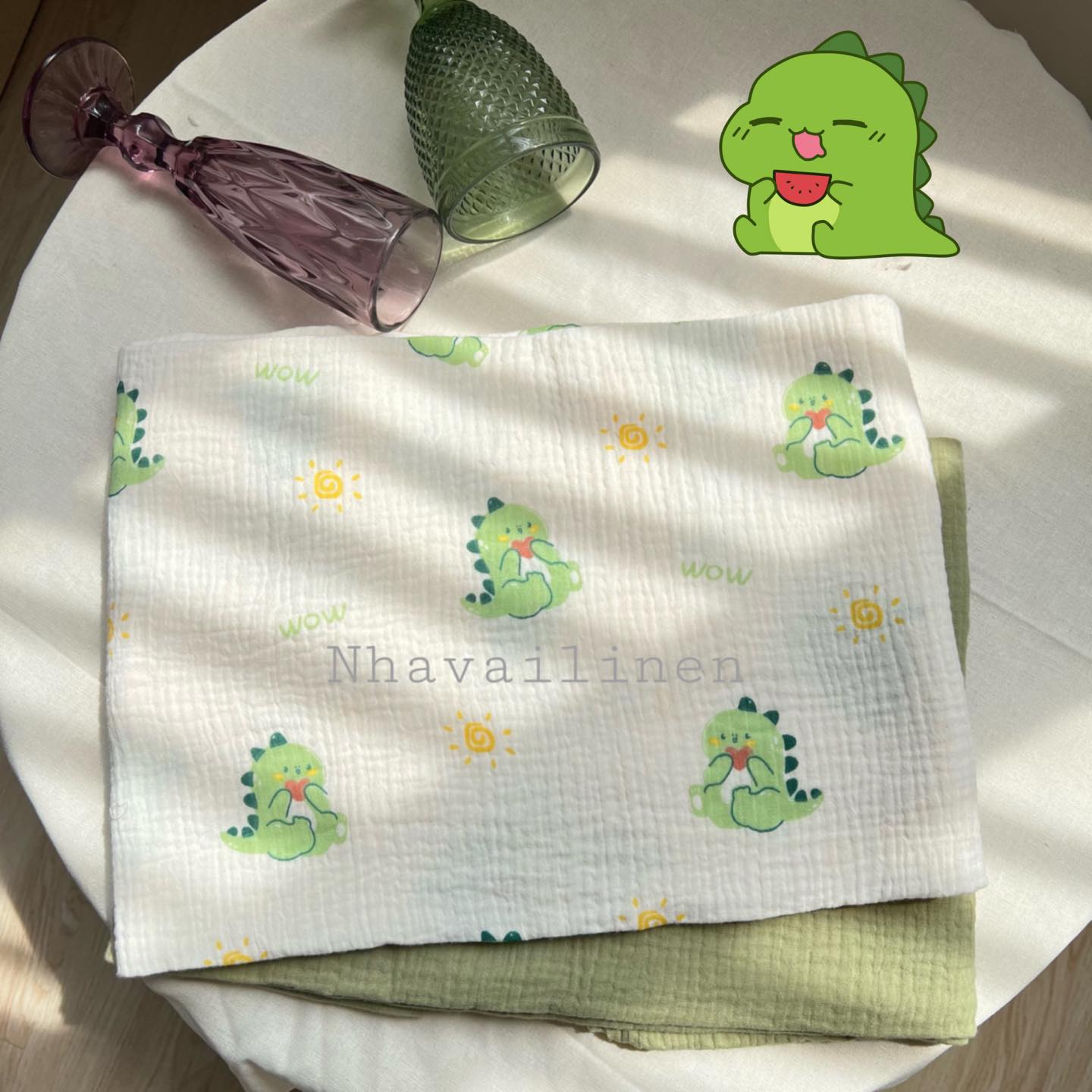 - Hoạ tiết: khủng long xanh