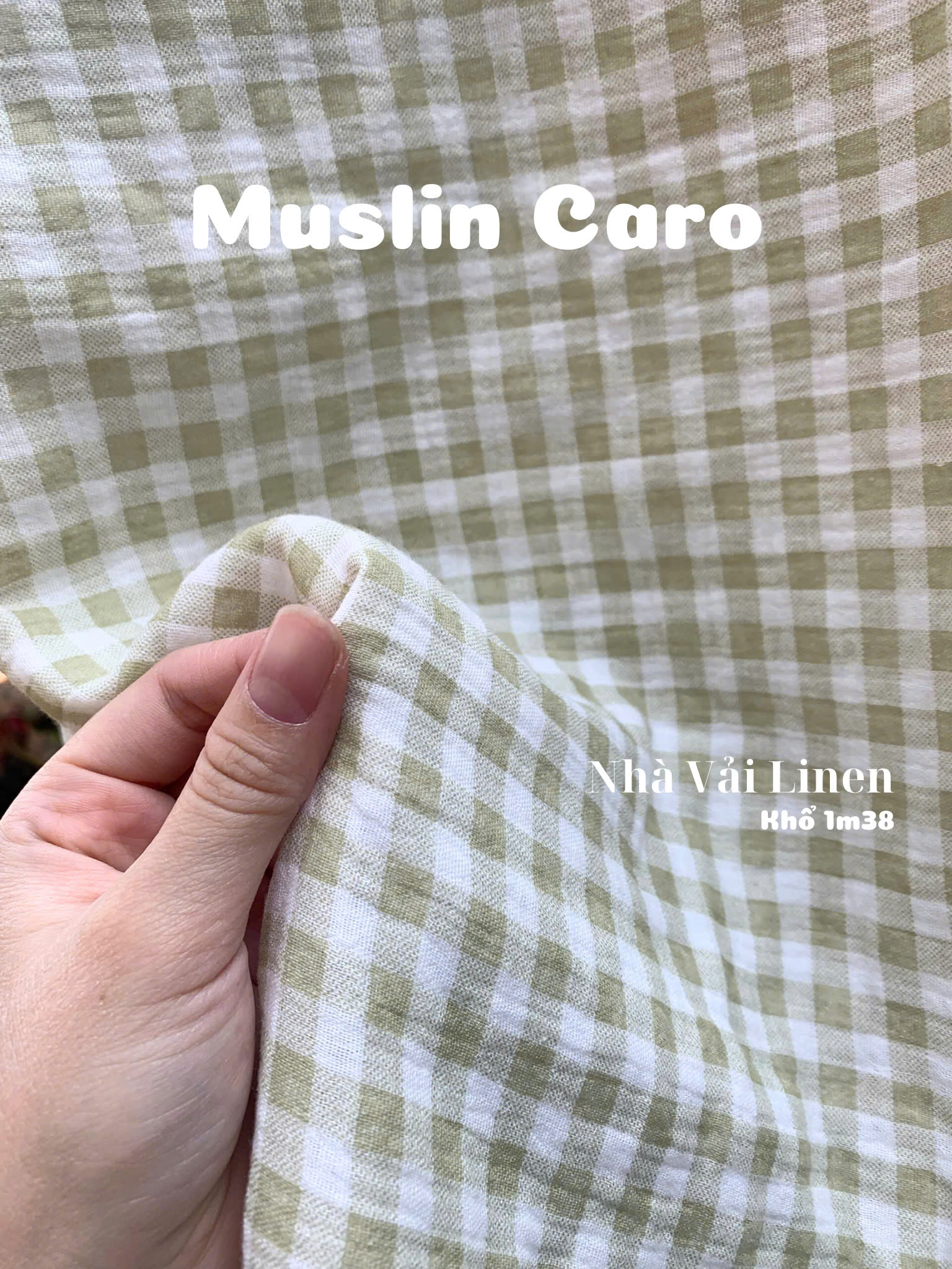 Xô muslin cao cấp 2 lớp hoạ tiết caro xanh rêu