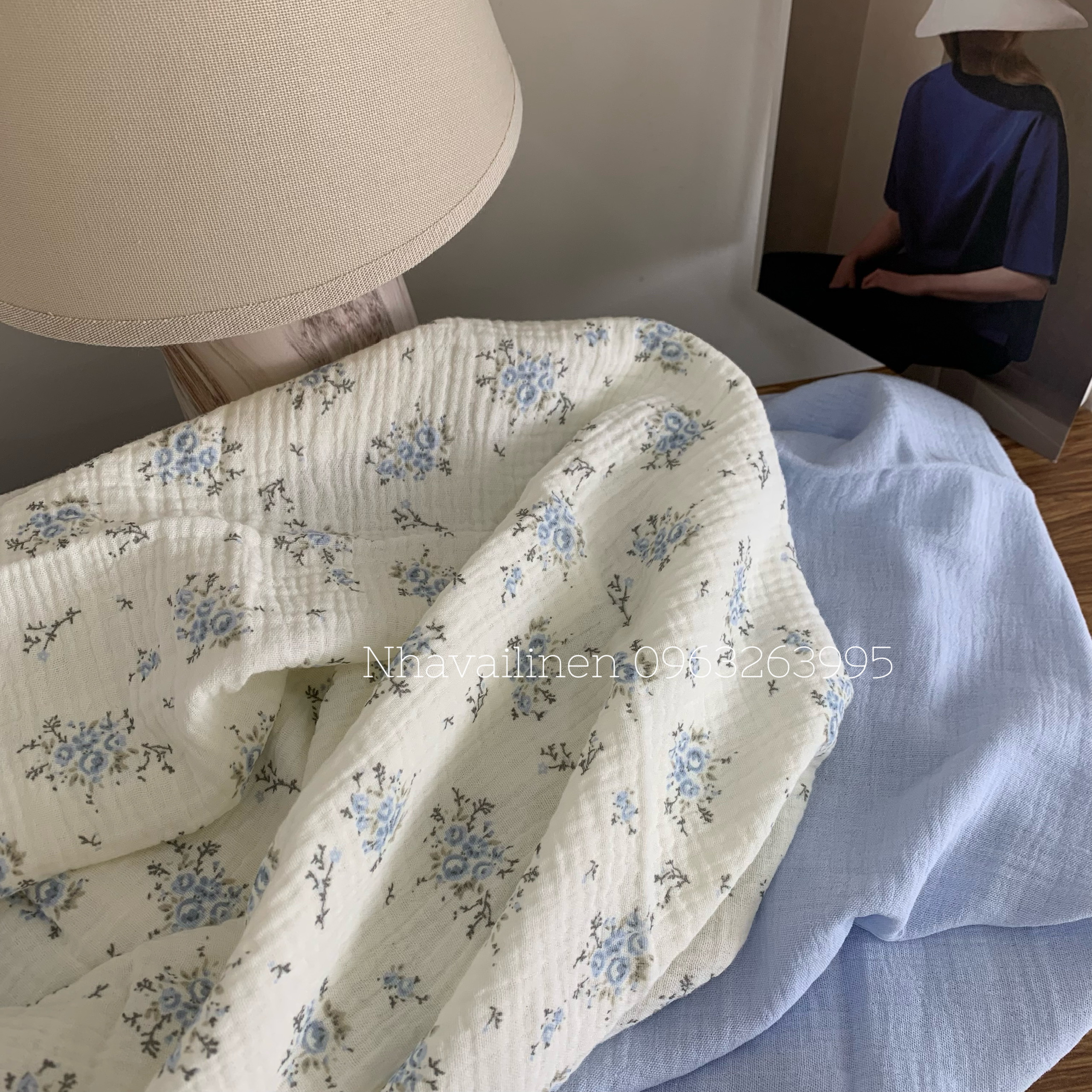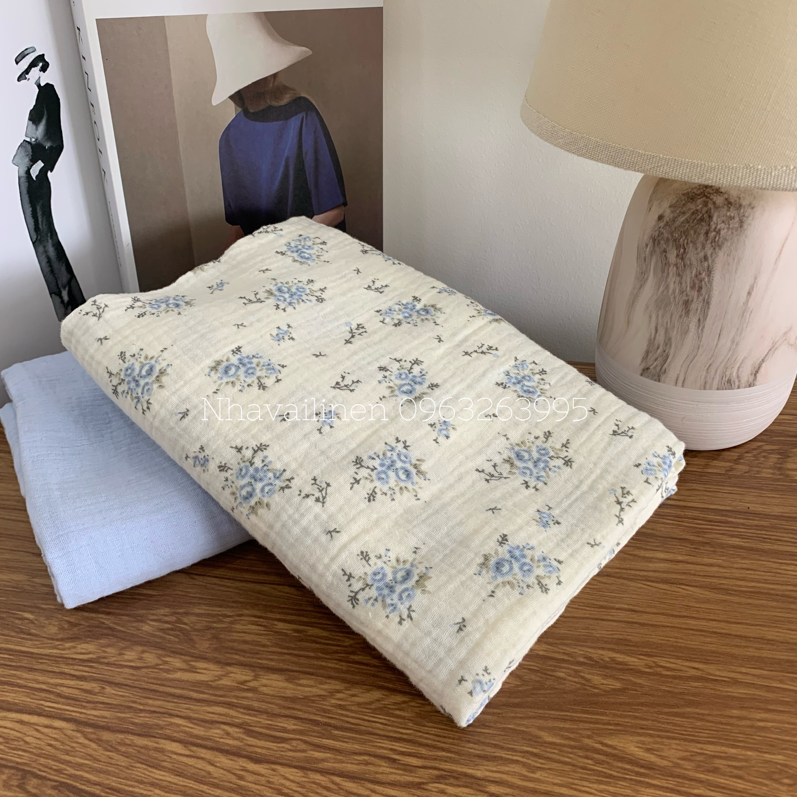 - Chất liệu: Vải Muslin được làm từ sợi cotton tự nhiên.