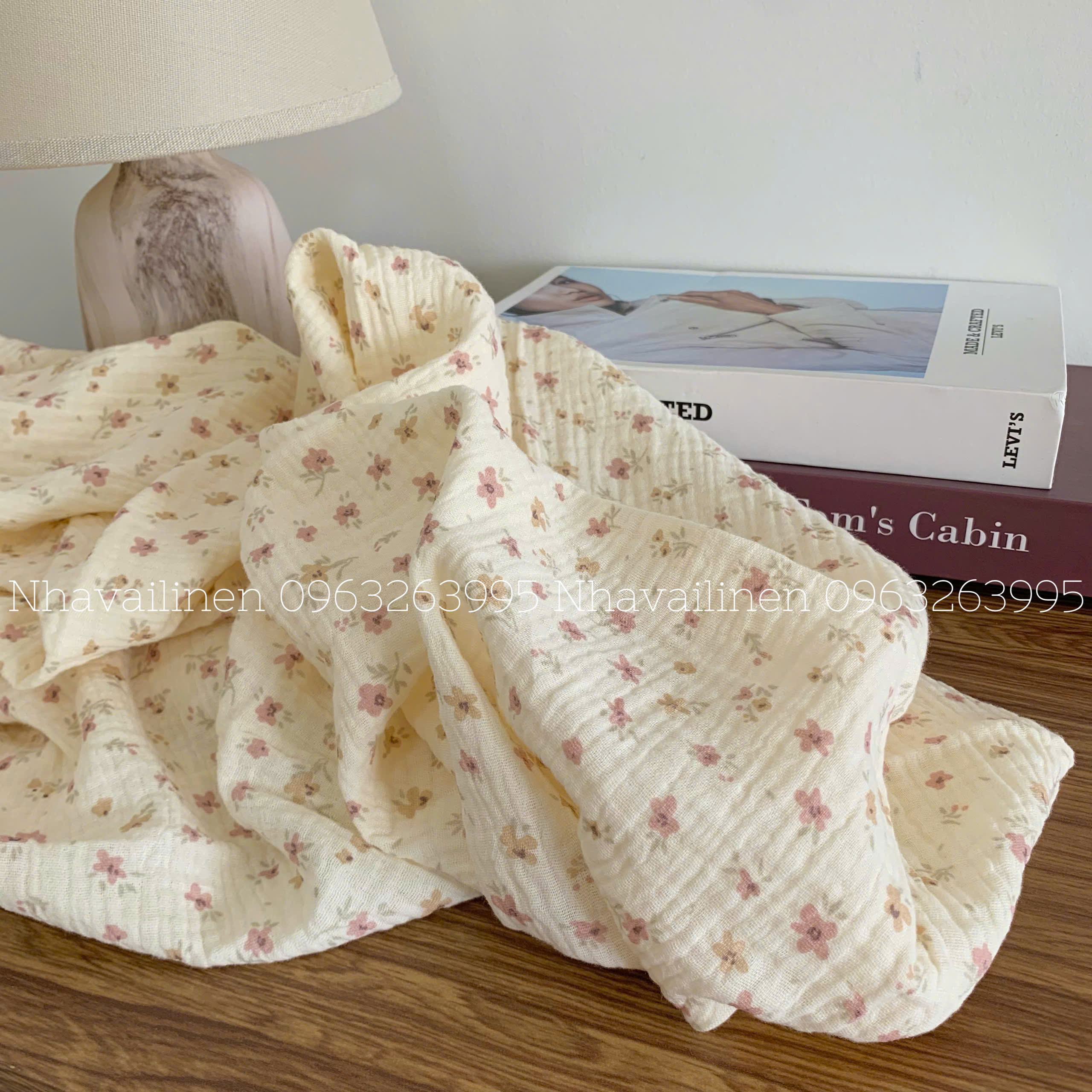 - Chất liệu: Vải Muslin được làm từ sợi cotton tự nhiên.
