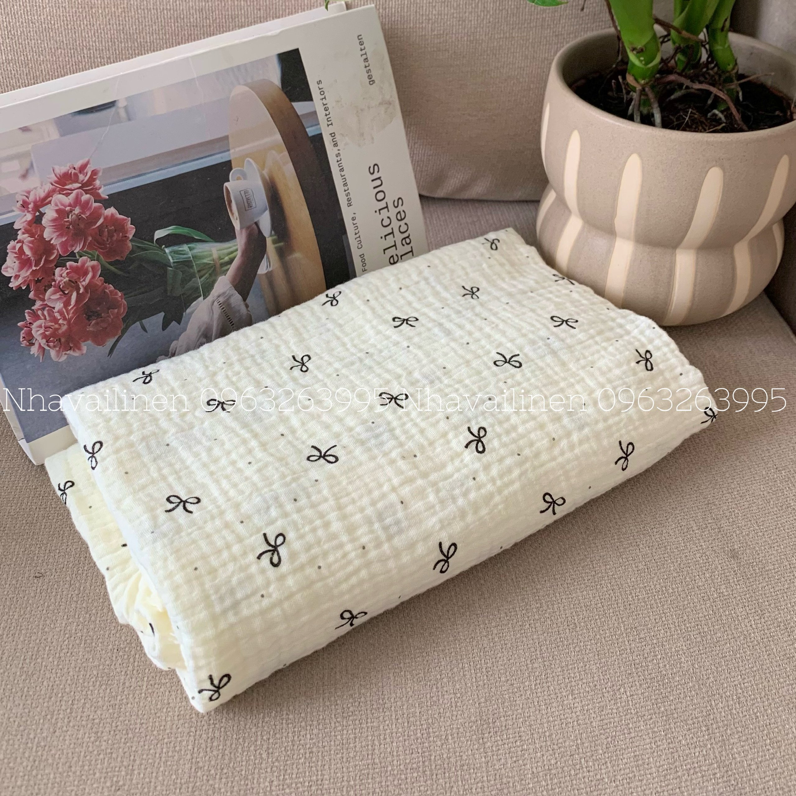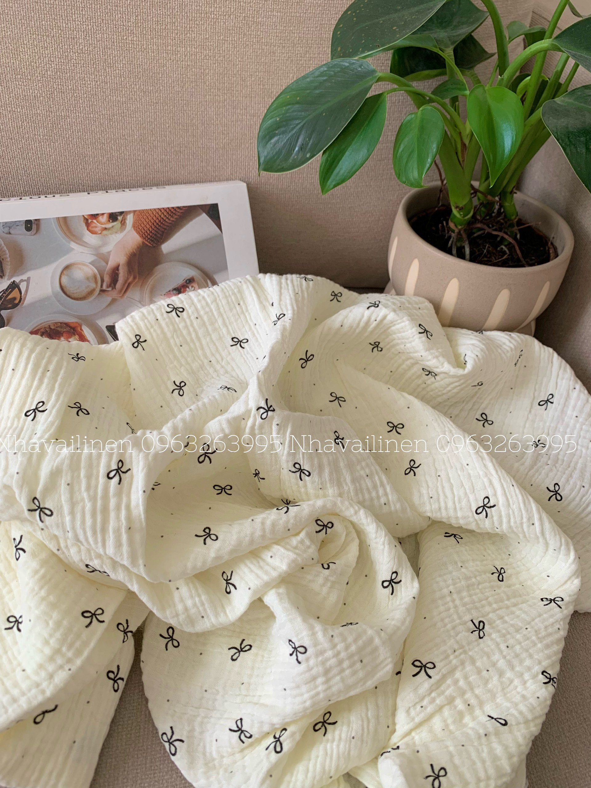 Xô muslin cao cấp 2 lớp hoạ tiết nơ chấm bi đen