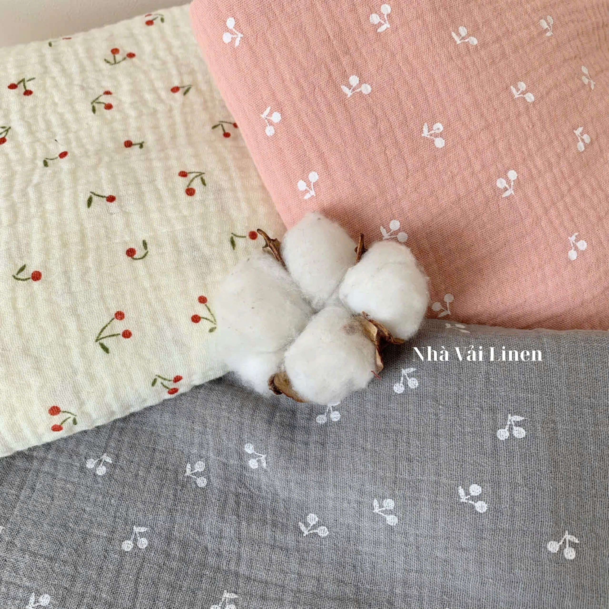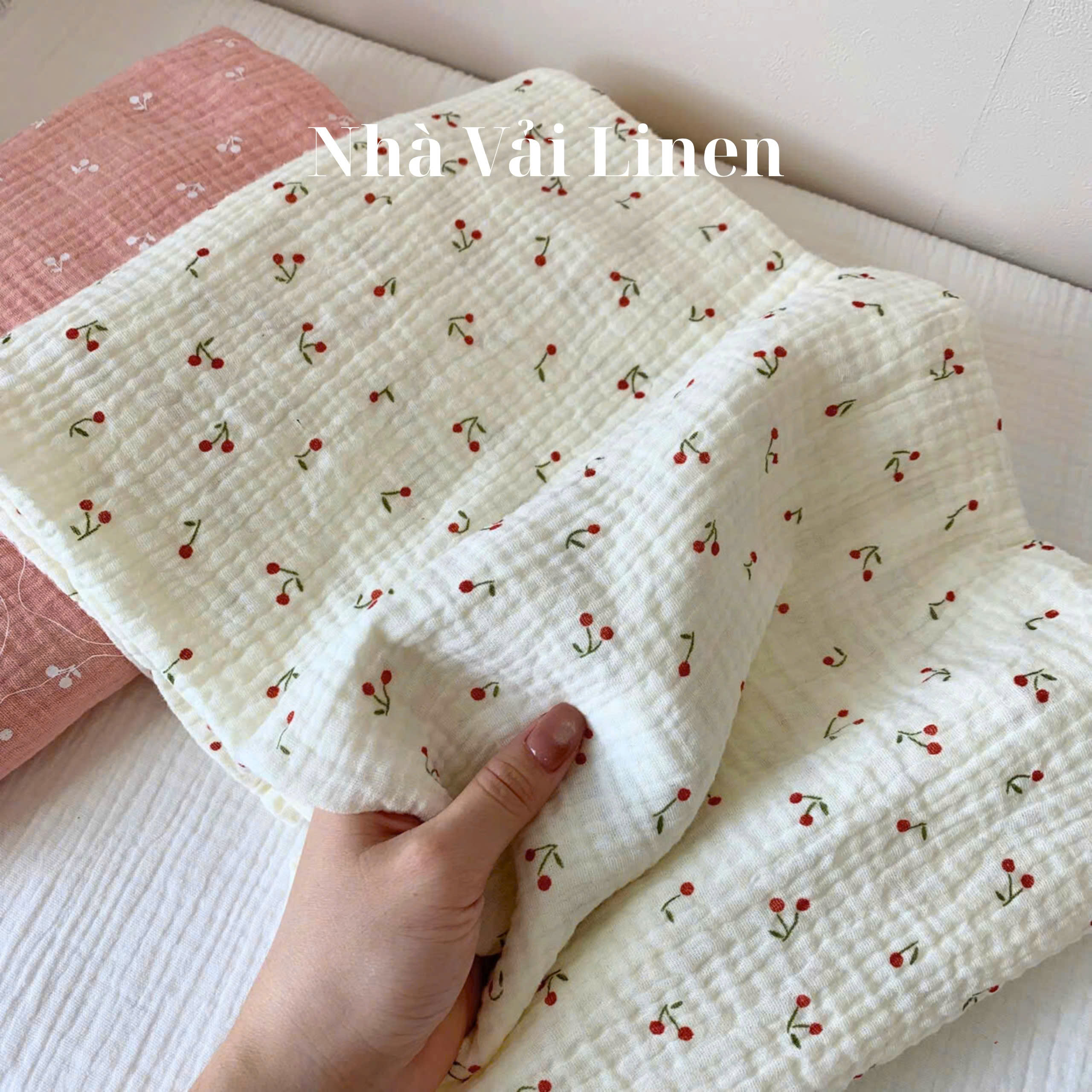 Xô muslin cao cấp 2 lớp hoạ tiết cherry