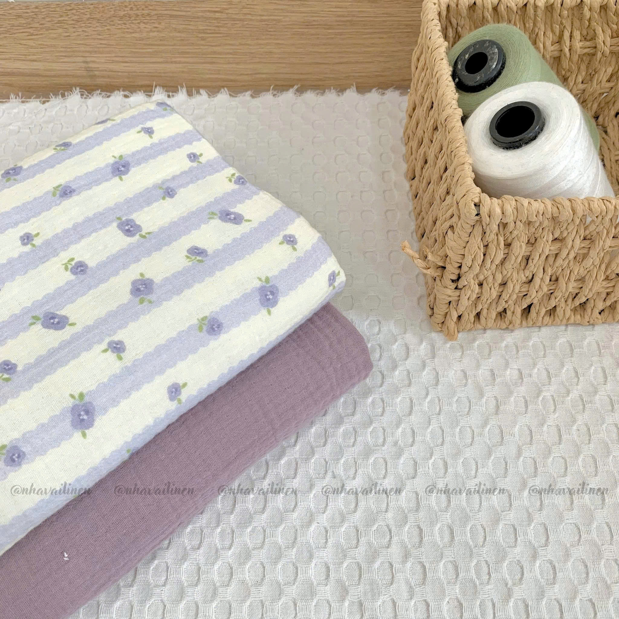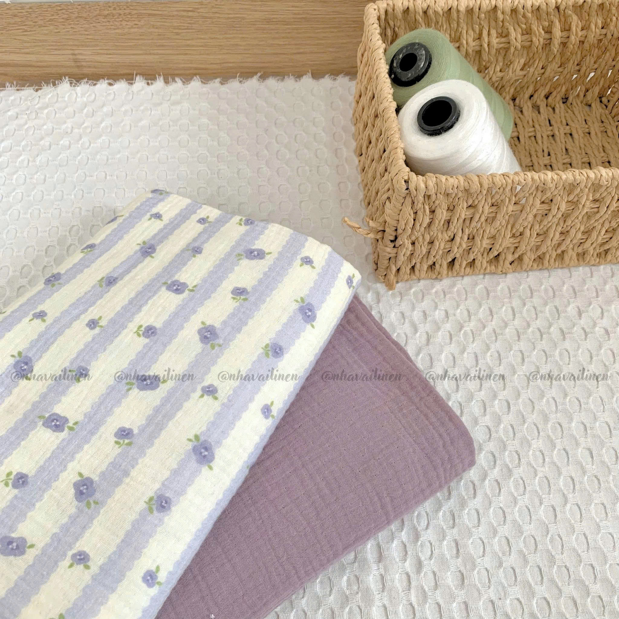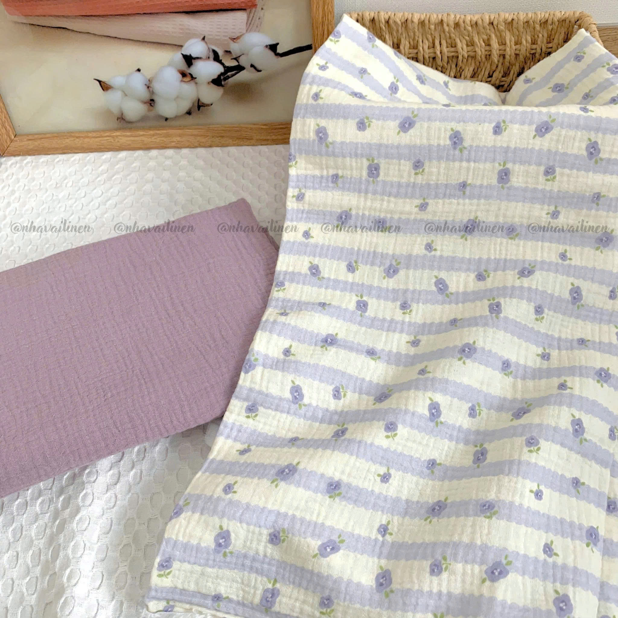 Xô muslin cao cấp 2 lớp hoạ tiết sọc hoa tím