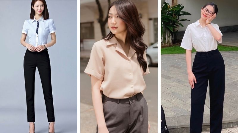 Khi lựa chọn áo sơ mi, bạn nên chọn các màu trung tính như trắng, be hoặc pastel để tạo cảm giác nhẹ nhàng, thanh lịch. Kết hợp với quần tây dáng suông hoặc quần cạp cao sẽ giúp tôn lên chiều cao và vóc dáng. Đừng quên hoàn thiện trang phục với một đôi giày cao gót và chiếc túi xách nhỏ gọn để tăng thêm phần chuyên nghiệp.