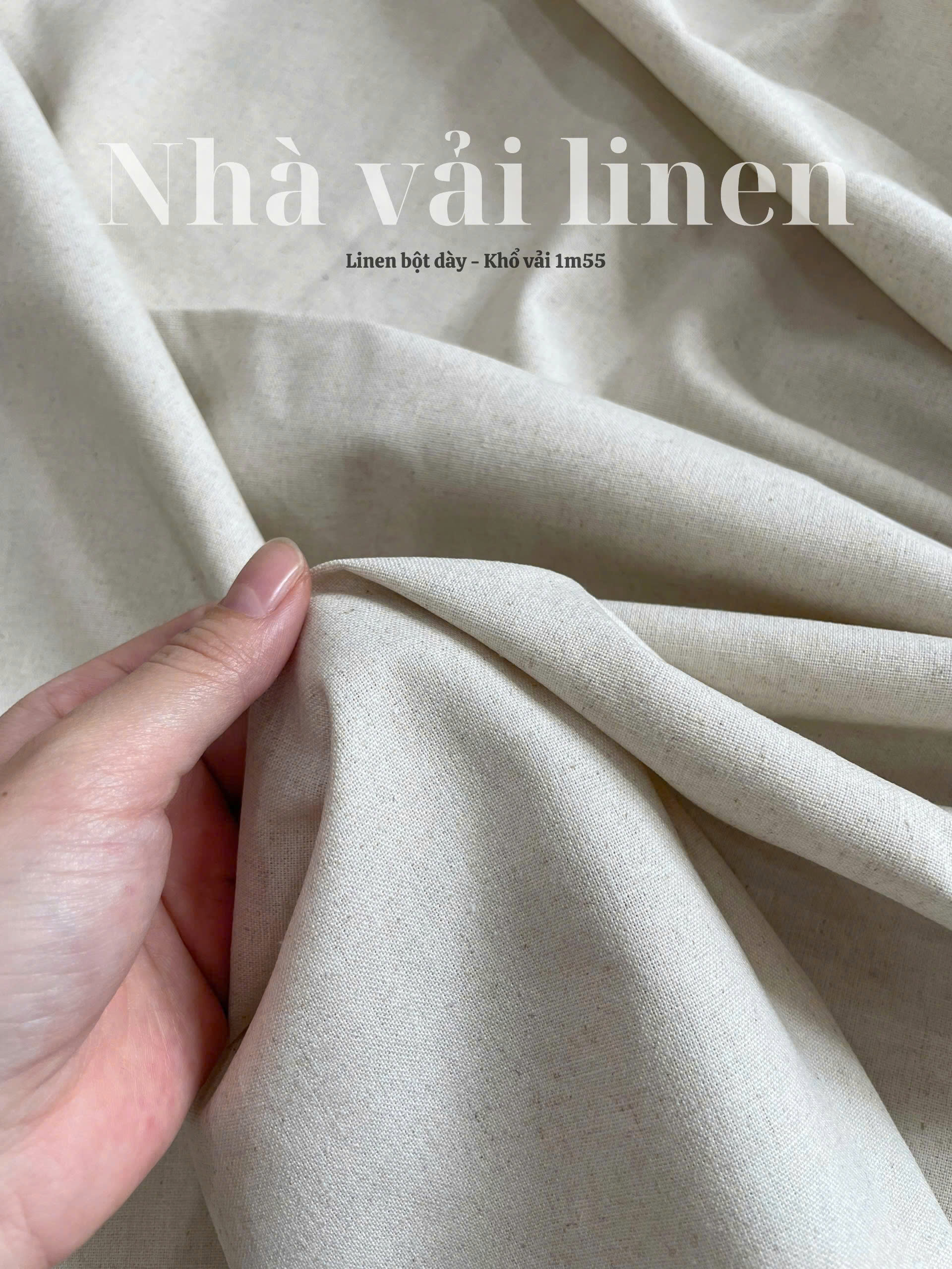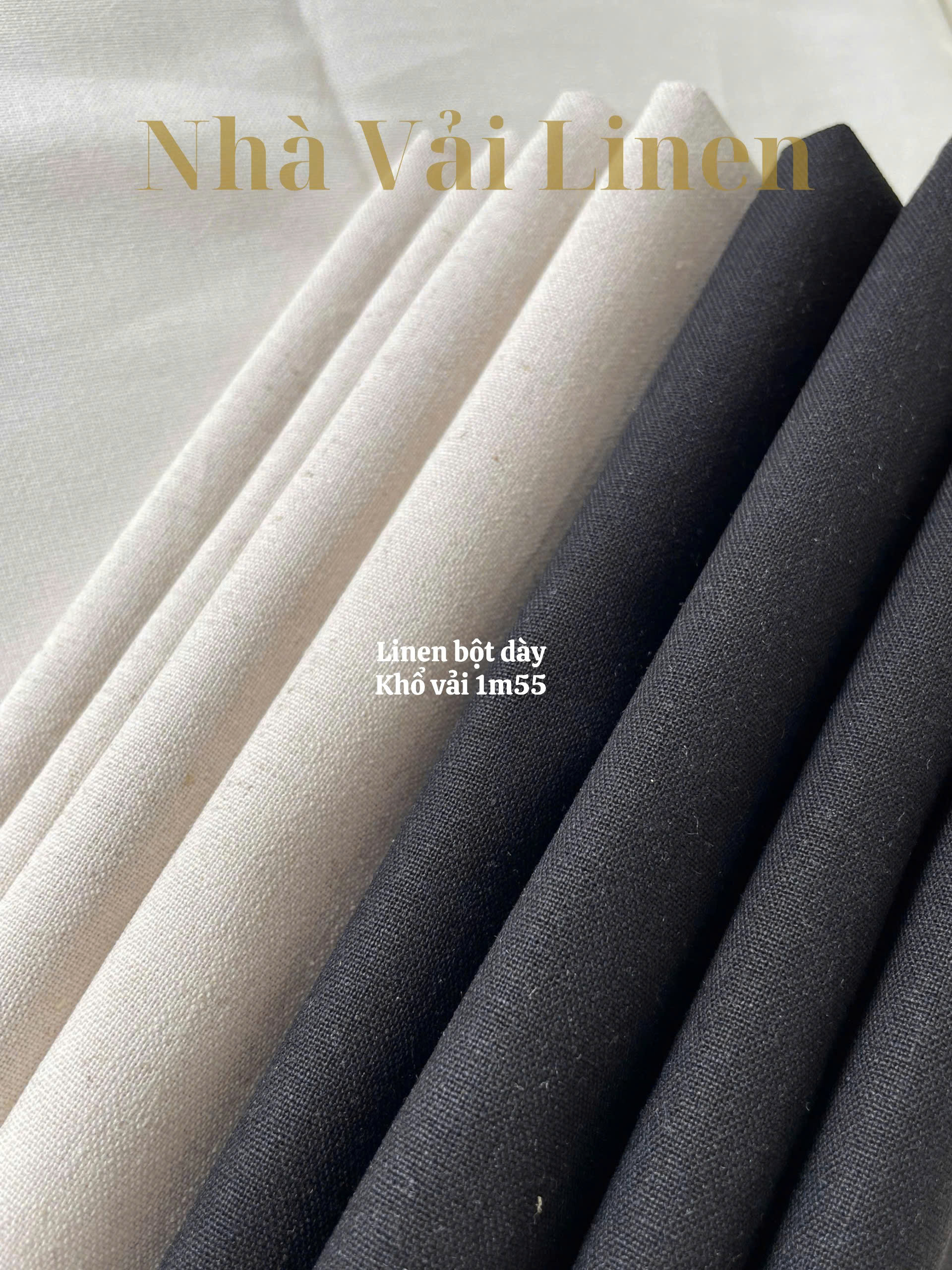 - Chất liệu linen bột dày cao cấp có đặc trưng mềm rũ và bề mặt vải sợi khít chắc chắn . Được dùng nhiều cho mùa hè vì khi mặc vào tạo cảm giác dễ chịu, thoải mái cho làn da.Vì đây là dòng cao cấp của linen bột nên có độ dày dặn đủ để may đầm váy, quần có thể không cần dùng lót, hạn chế được sự rớt sợi và xù lông.