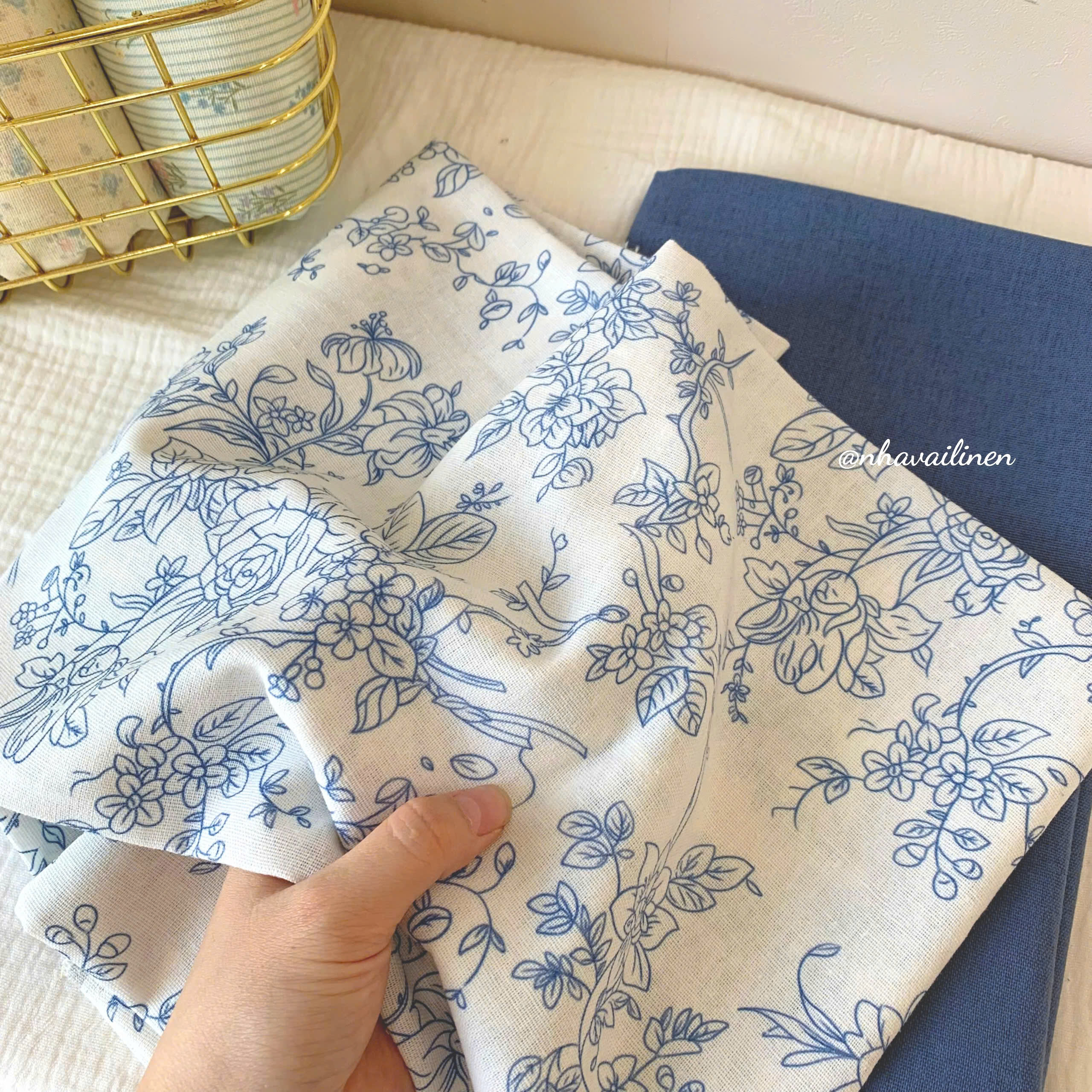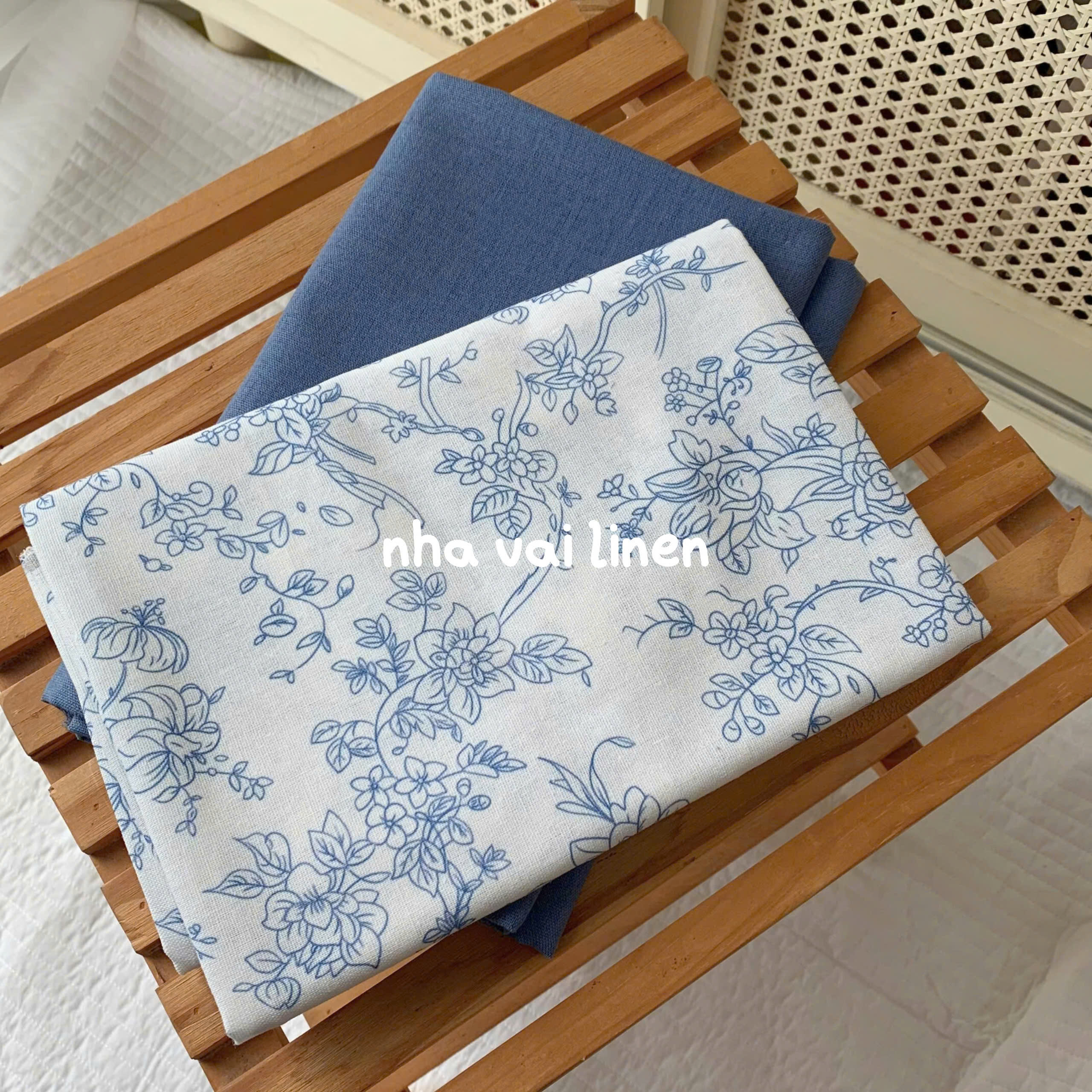 Vải linen bột lam hoa