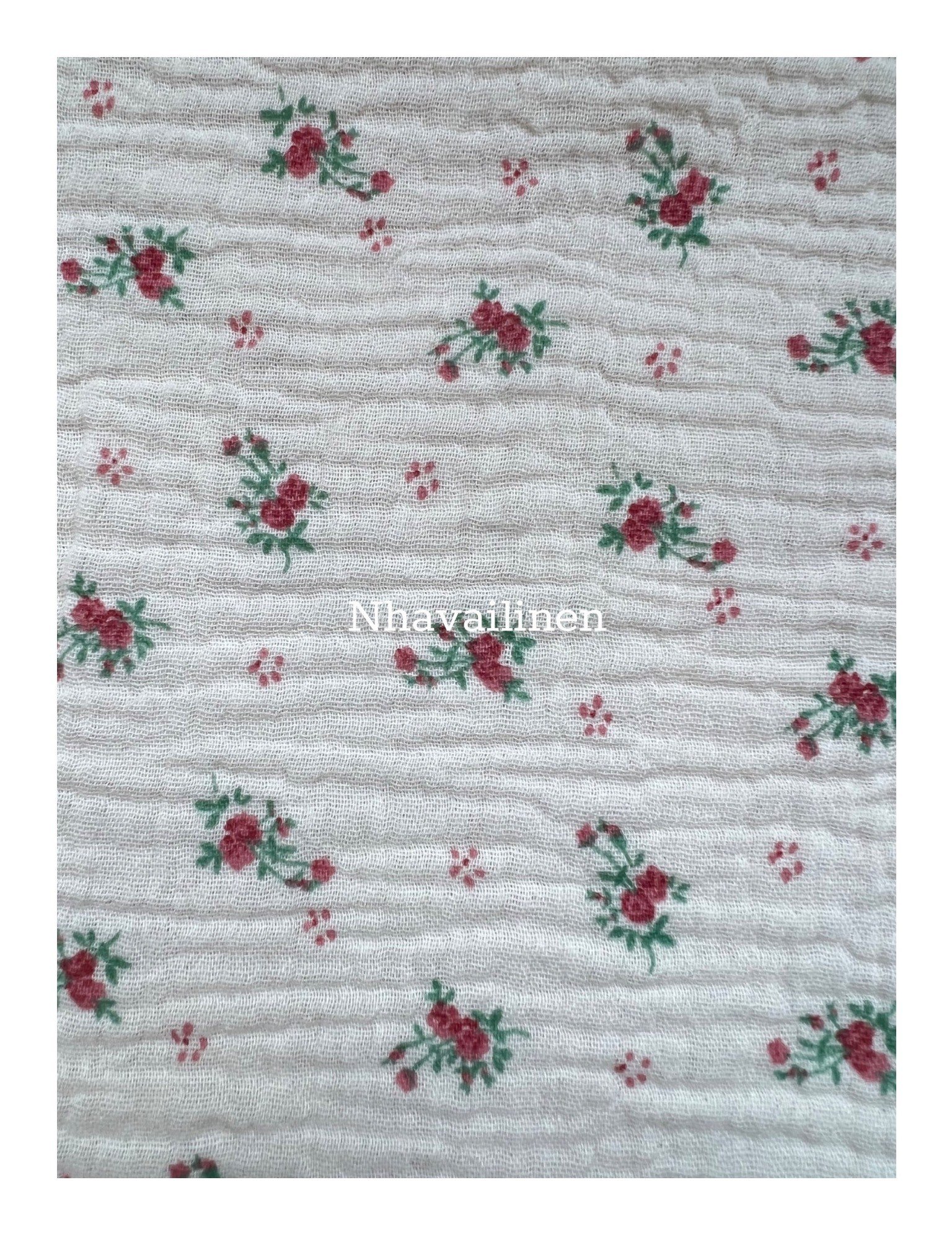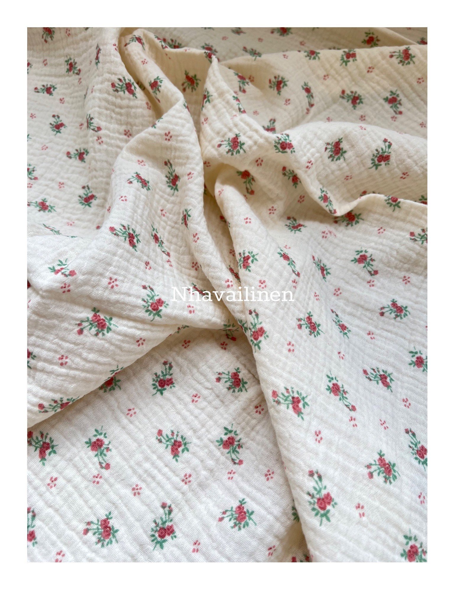 - Các mẫu hoa văn họa tiết do bên mình lên ý tưởng thiết kế một cách tỉ mỉ và canh chỉnh tỷ lệ hợp lí nhất đươc mang đi sản xuất in lên nền vải muslin trơn nên đặc tính của loại vải này sẽ giống như vải muslin màu trơn là có độ mềm rủ và thoáng mát, càng giặt sẽ càng mềm và sợi vải nở ra có độ phồng theo những nếp gấp tự nhiên của vải. Đặc biệt mực in được xử lí bằng in nhiệt nên sẽ không bị phai lem màu ra nền vải.