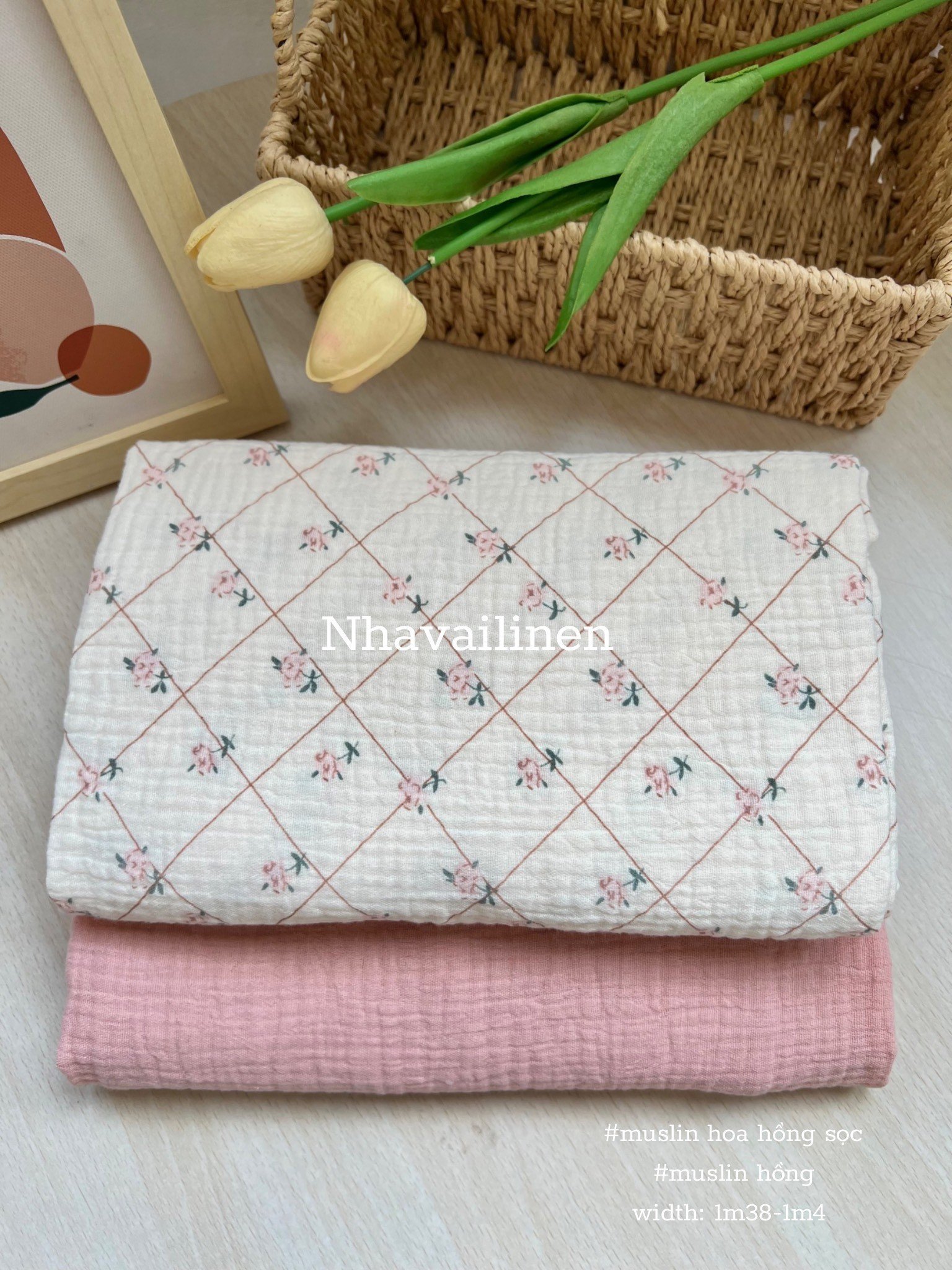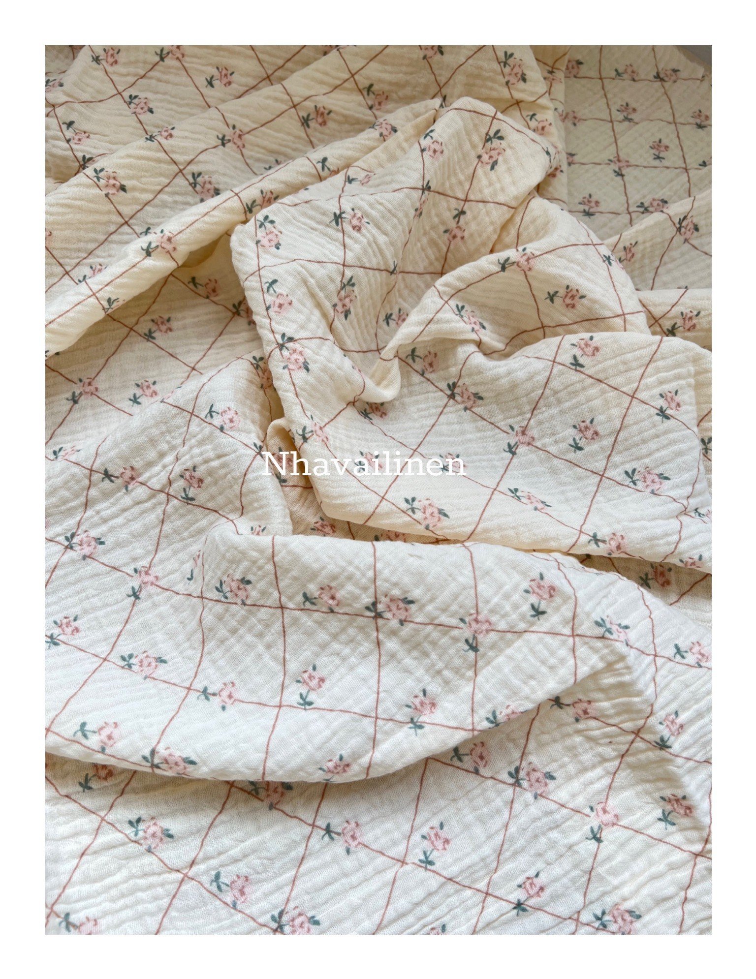 - Các mẫu hoa văn họa tiết do bên mình lên ý tưởng thiết kế một cách tỉ mỉ và canh chỉnh tỷ lệ hợp lí nhất đươc mang đi sản xuất in lên nền vải muslin trơn nên đặc tính của loại vải này sẽ giống như vải muslin màu trơn là có độ mềm rủ và thoáng mát, càng giặt sẽ càng mềm và sợi vải nở ra có độ phồng theo những nếp gấp tự nhiên của vải. Đặc biệt mực in được xử lí bằng in nhiệt nên sẽ không bị phai lem màu ra nền vải.
